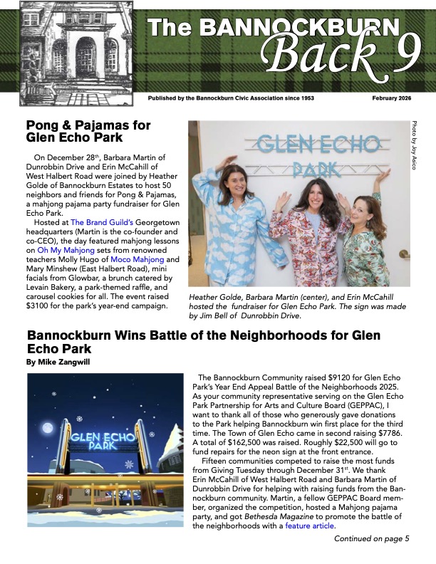 There are many worthy organizations that serve and support Bannockburnians; however, as a registered non-profit, BCC has been advised that accepting contributions on behalf of those organizations is not a best practice and raises complicated financial management issues. Accordingly, while we still strongly encourage Bannockburnians to support these groups, we can no longer directly collect contributions for entities not tied directly to BCC’s charter. If you have historically contributed to these organizations through BCC, please make note of this change and plan to donate directly for 2023 @
